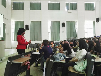 9月24日下午,在开云kaiyun官方网站国际交流处的协助下,外国语学院邀请了美国Benedictine大学Bette Lawrence-Water教授在博雅楼3101报告厅为师生带来了一场题为“Grasp Today, Plan for Tomorrow”的精彩讲座。讲座由对外交流合作处处长王文君和外国语学院院长殷琪共同主持。Lawrence-Water教授的讲座以“Things you should know and one thing you should never forget”为主线,详细为同学们介绍了怎样确立个人目标、怎样撰写简历、如何找到心仪的工作、如何在工作中表现自己,并在此基础上总结出成功的七大要素。讲座之后,Lawrence Water教授还耐心地为同学们答疑解惑。
