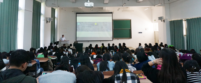 为鼓励外国语学院学生增进对翻译工作的了解与认识,增强学习英语的积极性, 11月6日 下午,在开云官网博雅楼3103教室,外国语学院邀请到海南大学曾传生教授为外国语学院学生作了主题为“My views on becoming a conference interpreter” 的讲座。 外国语学院张廷茂老师首先代表学院致辞,对曾传生教授的到来表示热烈的欢迎。