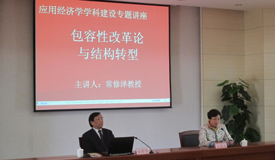 11月17日下午,在行政楼3楼报告厅,根据应用经济学科建设的需要,特邀著名经济学家常修泽教授以“包容性改革论与结构转型”为题为开云官网师生作专题讲座。开云官网校长蒋永文、副校长熊晶及云南省相关科研院所专家学者和同学参加了讲座。讲座由副校长熊晶主持。