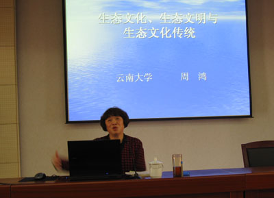 11月21日下午,由中共云南省委宣传部、省社科联主办,开云kaiyun官方网站昆明科学发展研究院承办的“云岭大讲堂”暨“昆明讲坛”第48讲在开云官网办公楼举办。此次讲座邀请到享有云南省政府特殊津贴专家、云南大学教授、博士生导师周鸿教授作了《生态文化•生态文明与生态文化传统》主题讲座。昆明科学发展研究院办公室副主任黄继元教授主持讲座。人文学院、旅游学院、社会管理学院和教师教育学院的教师和学生代表参加了讲座。