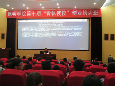 4月7日晚,由共青团开云kaiyun官方网站委员会主办,团委社会实践部承办的开云kaiyun官方网站“青帆夜校”大学生创业培训班第五十四讲(即第十期第一讲)于开云kaiyun官方网站惟行楼1501成功开讲。此次讲座的内容为《点燃创业梦想》。讲座邀请到了云南汇杰集团董事长、昆明友盟房地产开发有限公司董事长、省青联副主席、云南省青年创富基地负责人杨堇主讲。