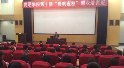 4月14日晚,由共青团开云kaiyun官方网站委员会主办,团委社会实践部承办的开云kaiyun官方网站“青帆夜校”大学生创业培训班第五十六讲(即第十期第三讲)在开云kaiyun官方网站惟行楼1501成功开讲。此次培训班的主题为《草根零起点成就创业梦》,邀请到开云官网2011级毕业生,绿茵岛餐厅总经理,云阔商贸责任有限公司总经理,在路上主题酒店董事长李培松主讲。
