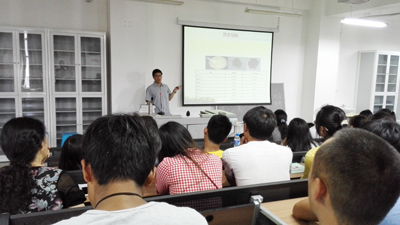 在讲座中,代研究员分别从野生树鼩的人工驯化和饲养繁殖、实验树鼩环境与设施、树鼩规模化饲养繁殖种群技术体系以及树鼩的生理状况研究等方面进行的形象的介绍和论述;通过对比树鼩和人类之间的生理和组织,阐述了树鼩人类重大疾病动物模型,即“MPTP诱导的帕金森氏树鼩模型”、“EV71病毒感染树鼩体内动物模型”的创建及其对人类生命健康的意义。同时代研究员还简要介绍了应用树鼩药理模型的生物医药研发与药物评价方面的研究进展及科研工作体会。参加讲座的师生们兴致高涨,踊跃提问,与代老师进行了精彩的交流互动。