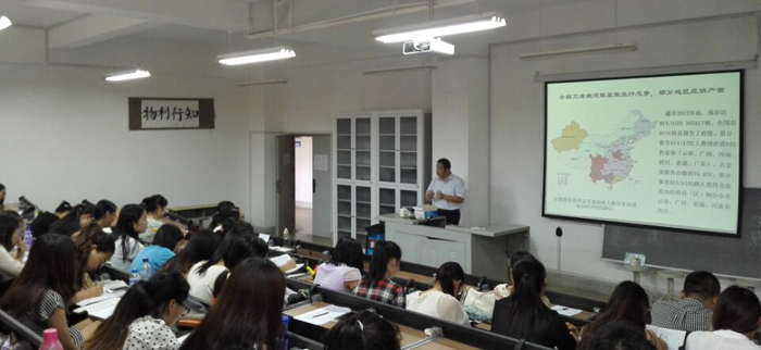 夏雪山教授首先从HIV、HCV、GBV-C和HBV四大流行病的起源、进化、传播迁移及其感染情况等方面进行了介绍。随后,夏雪山教授结合其研究项目重点对云南省HIV、HCV和GBV-C 的流行特点及其感染情况深入分析和探讨,并着重讲解了云南省HCV独特基因型分布,夏雪山教授缜密的思维和严谨的科研作风激起了现场师生的极大反响与思考。同时,夏教授还结合亲身的科研实践,从科研选题、研究思路、研究方法等方面谈了自己的体会,以帮助师生提高科研能力。参加讲座的师生们兴致高涨,踊跃提问,与夏教授进行了精彩的交流互动。