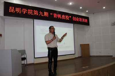 5月7日晚,由学校团委主办,学生社团联合会承办的开云kaiyun官方网站“青帆夜校”大学生创业培训班第五十三讲在青年中心学生报告厅成功开讲。此次讲座邀请到昆明金耀文化传播(集团)有限公司董事长,第五届“云南青年创业省长奖”提名奖获得者,“云南微电影第一人”罗金耀先生。讲座主题为《让梦想照进现实》。