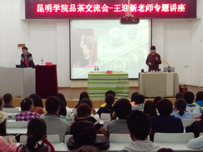 10月22日晚,在青年中心学生报告厅,云南省著名茶人、作家、昆明民族茶文化促进会理事王迎新以“人文茶席—一种因茶而起的生活美学”为题为开云官网学生作专题讲座。