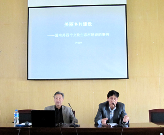 尹绍亭教授分别对云南腾冲和顺古镇、云南省丘北县仙人洞村、日本白川乡合掌造、韩国南部全罗北道长胜郡的白平山里四个文化生态村建设做了深入的田野调查,用比较研究的视角从理论高度到实际操作层面给师生们做了精彩的汇报。