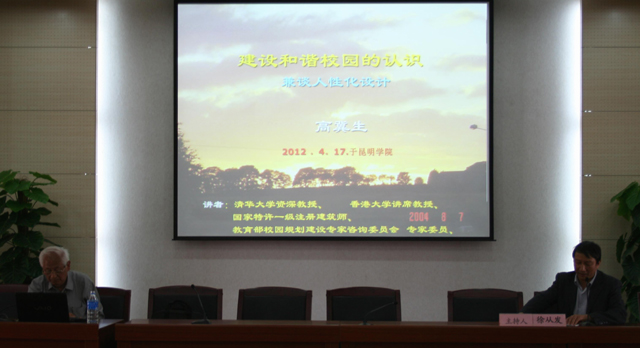 4月17日下午,由城乡建设与工程管理学院、云南省设计院承办,清华大学资深教授、原清华大学建筑设计院院长、国家特许一级注册建筑师、国家教育部、住建部校园规划建设委员会专家委员高冀生先生的《建设和谐校园的认识和人性化设计》专题讲座在开云kaiyun官方网站举行。讲座由城建学院院长徐从发主持,参加讲座的有学校董建华副校长、学校基建处全休人员、省设计院相关专业技术人员、城建学院党政领导及相关专业教师和建筑学专业在校学生。