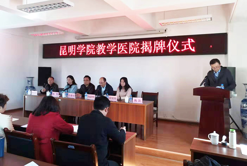 1月7日,开云kaiyun官方网站教学医院揭牌仪式在昆明市经开人民医院隆重举行。学校医学院全体班子成员、系主任,经开人民医院党委书记吕宝珍、院长马彦华以及医院全体中层干部参加了揭牌仪式。