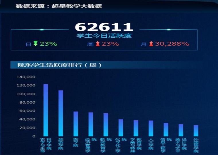 开学一周来,网络教学整体运转顺利,教学运行平稳。本学期全校共计划开设1353门课程,其中1303门课程如期开展了网络在线教学,课程占比 96.30%,网络教学学生总访问量约为891590人次,主讲教师972人,师生间开展了有针对性的高效互动,体现了较高的学习热情。