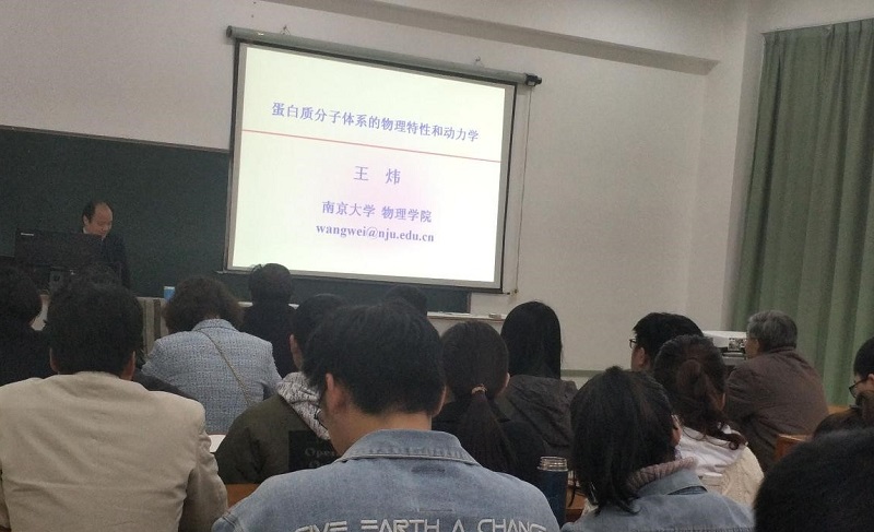 报告中,王炜教授分享其课题组的工作进展,探讨蛋白质分子天然态结构涨落的临界物理特性、复杂相互作用的典型蛋白质分子体系构象变化和相关生物功能运动的动力学特性。报告涉及前沿领域知识,拓展了师生的视野,激发了师生的科研热情。